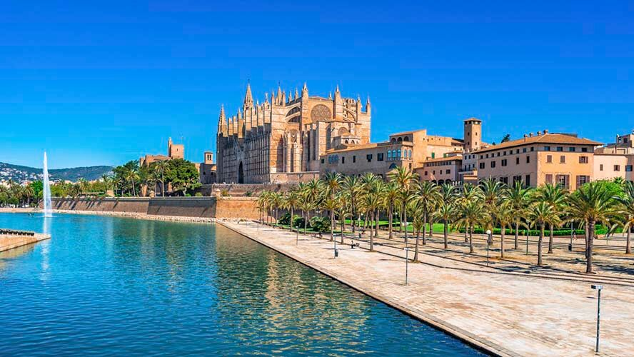 Además de sus magníficas playas, Palma de Mallorca ofrece un sinfín de posibilidades vinculadas a la historia, el arte, el patrimonio arquitectónico, la gastronomía y la diversión. A orillas de la bahía, se muestra orgullosa la Catedral de Palma, conocida como “la Seu”, un impresionante templo gótico que define el perfil de la ciudad. No dejes de visitar tampoco el castillo de Bellver, la Lonja de Palma y los jardines del palacio de Marivent. Por supuesto, es también obligado recorrer el Paseo Marítimo para dejarte contagiar por la animación de la ciudad.